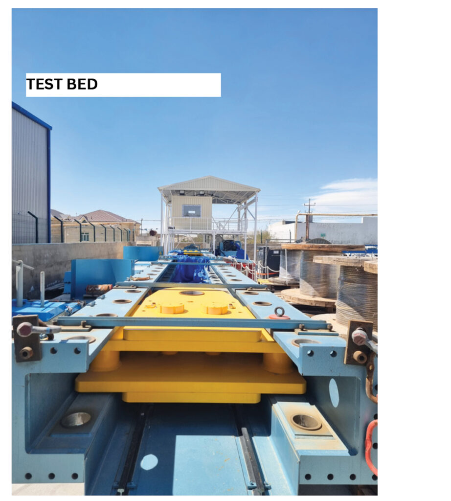 Multiple tensile test beds with capacities ranging from 150t to 1000t .