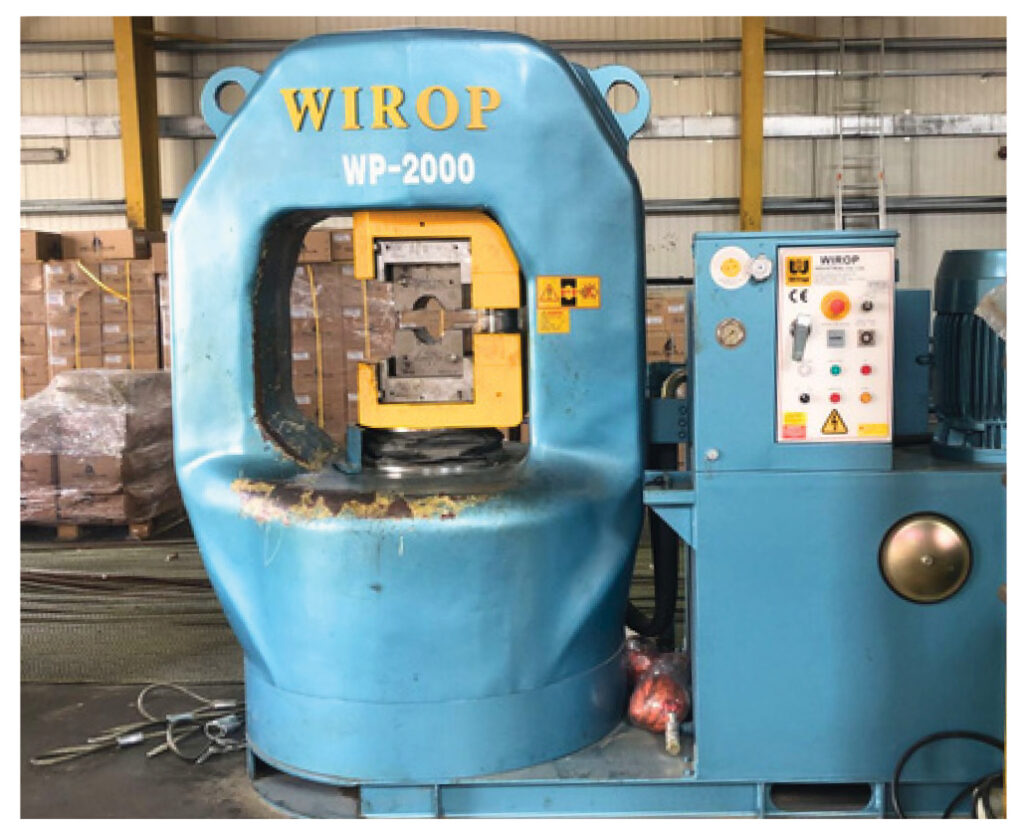 Hydraulic wire rope swaging machines up to 2000t, capable of producing slings up to 4” .